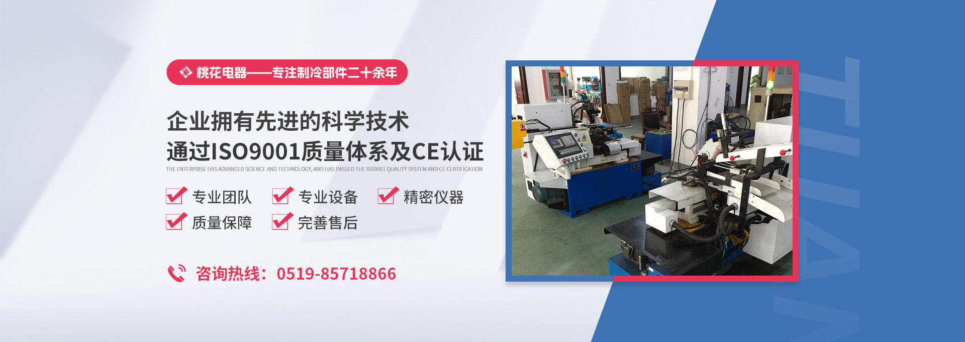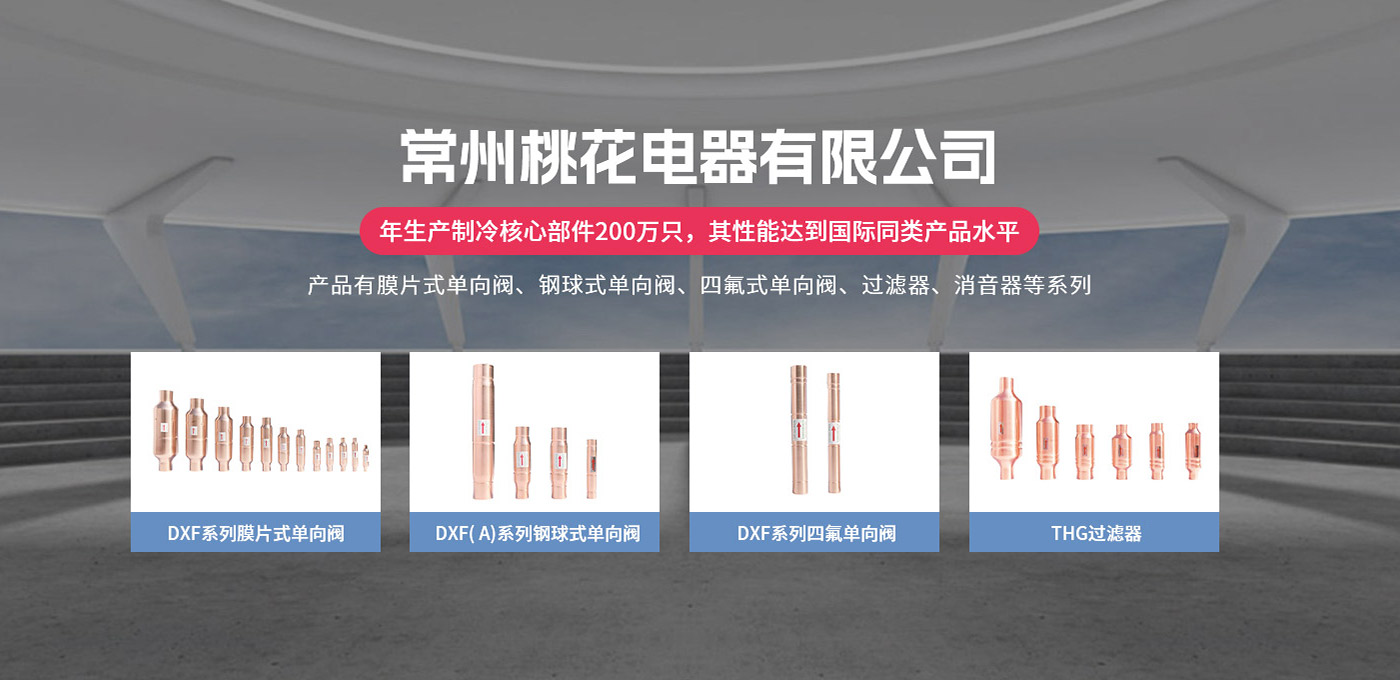 常州桃花電器有限公司地處中國長江“金三角”之稱的上海至南京高速公路、城際高鐵、常州高新經(jīng)濟技術開發(fā)區(qū)路段,交通便利、技術力量十分雄厚。它是集研究、開發(fā)設計、制造和經(jīng)營制冷核心部件的企業(yè),主要生產(chǎn)中央空調上使用的制冷部件。產(chǎn)品有膜片式單向閥、鋼球式單向閥、四氟式單向閥、過濾器、消音器等系列。年生產(chǎn)制冷核心部件200萬只,其性能達到國際同類產(chǎn)品水平。 企業(yè)擁有先進的科學技術、國際先進的生產(chǎn)加工設備和精密的檢測儀器,并已通過ISO9001質量體系及CE認證,公司歷史悠久,2000年起,經(jīng)過長期積累、沉淀,經(jīng)驗豐富,從而保證了產(chǎn)品的高質量、高性能、高耐用性。企業(yè)產(chǎn)品在國內外市場具有較高的知名度,深受眾多中外品牌制冷客商的好評。主要客戶有約克、麥克維爾、美的、開利、特靈、頓漢布什、清華同方、天加等.并出口北美、歐洲、東南亞等地區(qū)。 高品質產(chǎn)品是企業(yè)的保證,周到服務是合作友誼的承諾,企業(yè)本著“求